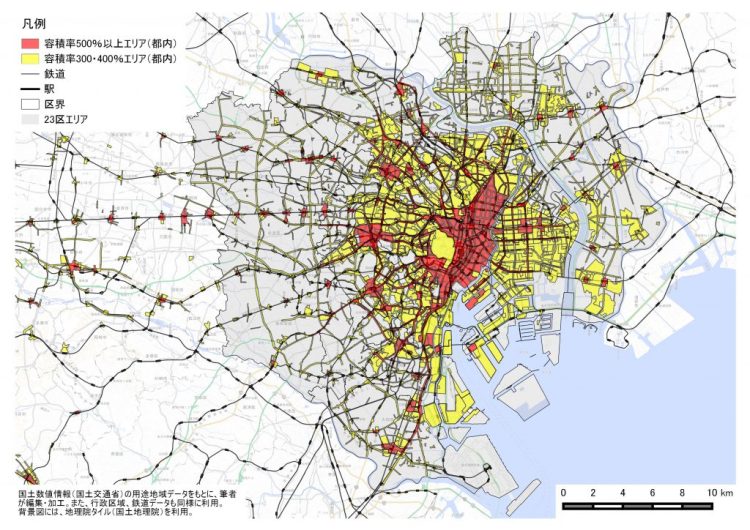 マンション向けエリア: 容積率300~400%、制限は緩やか